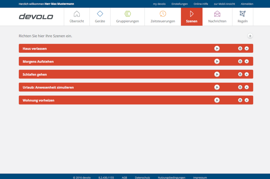 Mit Regeln, Szenen, Gruppierungen und Orten macht Ihnen die devolo Home Control Software das Leben leichter: Geräte werden intelligent kombiniert, Arbeitsschritte zusammengefasst. Das kann zum Beispiel so aussehen, dass bei Aktivierung der Szene „Guten Morgen“ gleichzeitig das Radio angeht, die Heizung hochfährt und sich die Kaffeemaschine einschaltet. Über Gruppierungen lassen sich mehrere Geräte gleichzeitig steuern, zum Beispiel alle Heizthermostate. Und die Regeln kombinieren ganz individuell beliebige Produkte miteinander. Sinnvoll ergänzt werden die Features durch praktische Anwendungen wie Statistiken und das Haus-Tagebuch, die Auskunft über den Zustand der Home Control-Bausteine geben. Mit der neuen devolo Steuerung sparen Sie Zeit und Aufwand. Und gewinnen Sicherheit sowie Komfort.