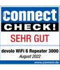 Daneben verfügt der Repeater über eine 2x2 MIMO Antennenkonfiguration, Airtime Fairness, Band Steering, Beamforming, Crossband Repeating, Fast Roaming und Multi-User-MIMO. Im Zusammenspiel mit Wi-Fi 6 bedeutet das eine WLAN-Leistung von bis zu 3000 Mbit/s (2400 Mbit/s, 5 GHz & 574 Mbit/s, 2,4 GHz).
